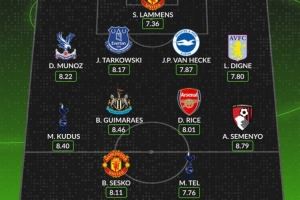 后卫:穆尼奥斯(水晶宫)、塔科夫斯基(埃弗顿)、范赫克(布莱顿)、迪涅(维拉)